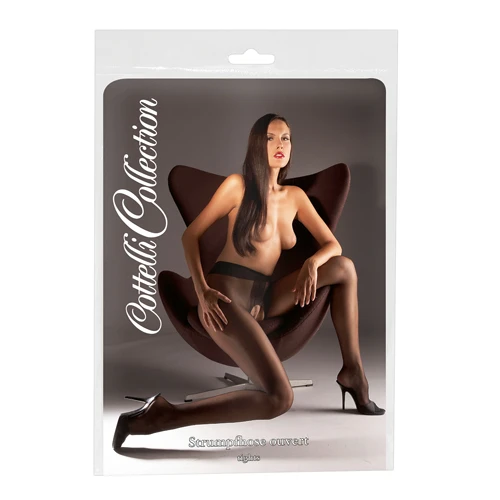 Prachtige zwarte panty van hoge kwaliteit. Deze panty heeft een licht satijnen glans voor verleidelijke gladde benen. Het open kruisje van de panty is versterkt en geeft een uitdagende blik op je kruis. De voeten van de panty zijn voorgevormd voor extra stevigheid. De panty voelt spannend tijdens het dragen en zit erg comfortabel.