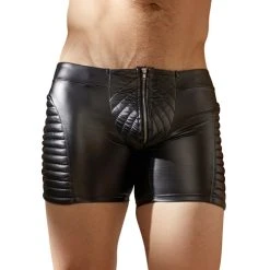 In deze boxer geniet je ongetwijfeld van een zelfverzekerd gevoel. De boxer is gemaakt van glad materiaal dat een matte glas heeft en perfect aansluit op al je mannelijke vormen. De zijkanten zijn gemaakt van doorschijnend materiaal en hebben een rijgveter in het midden voor een stoere look. Over het kruis lopen drukknoopjes die erg van pas kunnen komen in de slaapkamer.